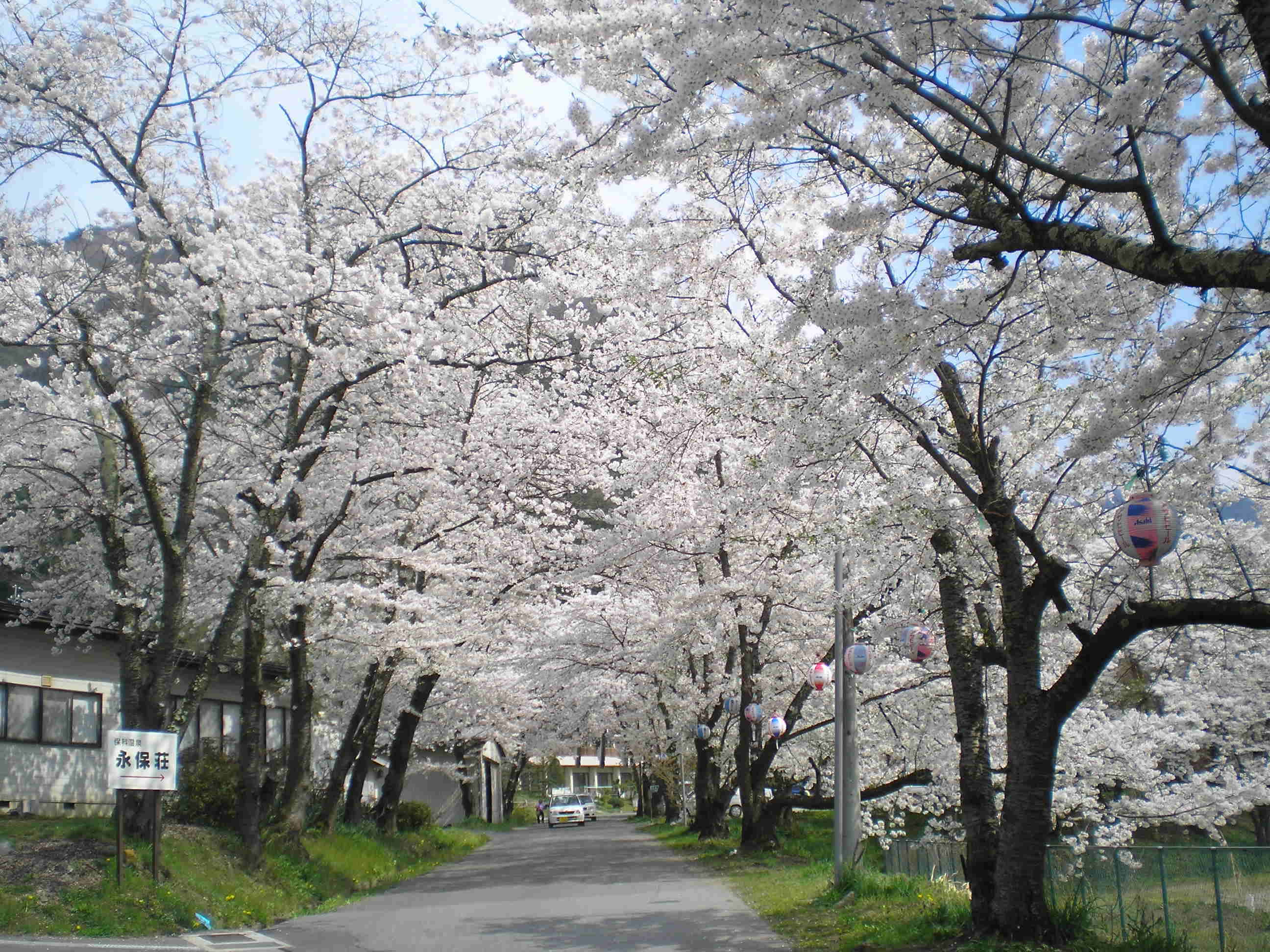 ![]() 保科温泉桜全景 |