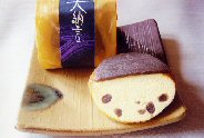 マドレーヌ生地に栗あんと大納言を加えて焼成し さらに頭部に黒羊かんを添えた和洋折衷のお菓子です。 ●1個/126円 | |